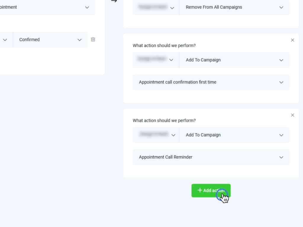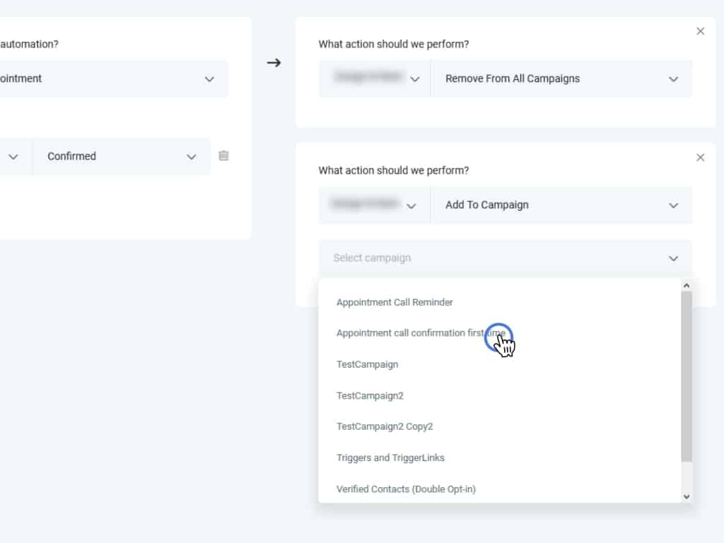 And from our Select Campaign dropdown, we'll choose the "Appointment call confirmation First time" campaign.