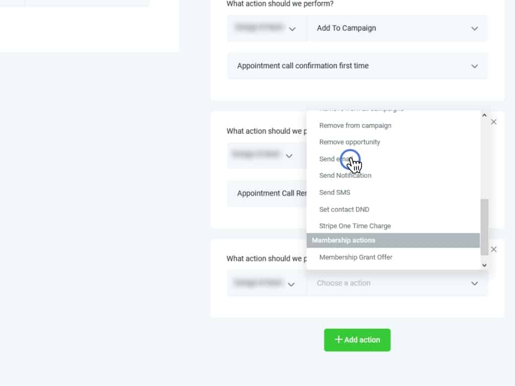 This time when we open the dropdown, we’ll choose Send email from the list.