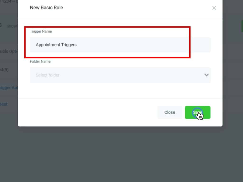 And in the pop-up that appears, give the trigger a name and click Save. We’re going to call our rule, “Appointment Triggers.”