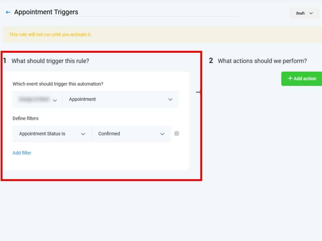 So for our condition, we've told our trigger to activate whenever an appointment has been confirmed.