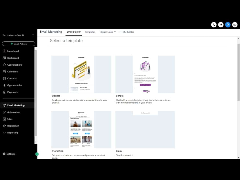 You can choose an existing template or select the Blank option to create an entirely new email.