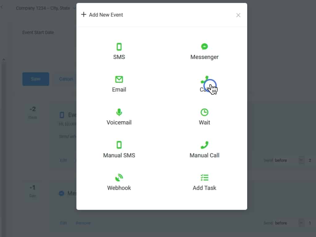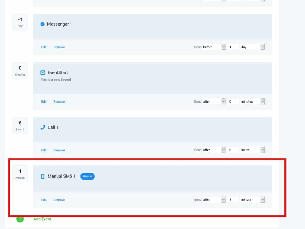 The reason why you would want to use a Manual SMS or Manual Call event is to give the contact a more personalized experience.