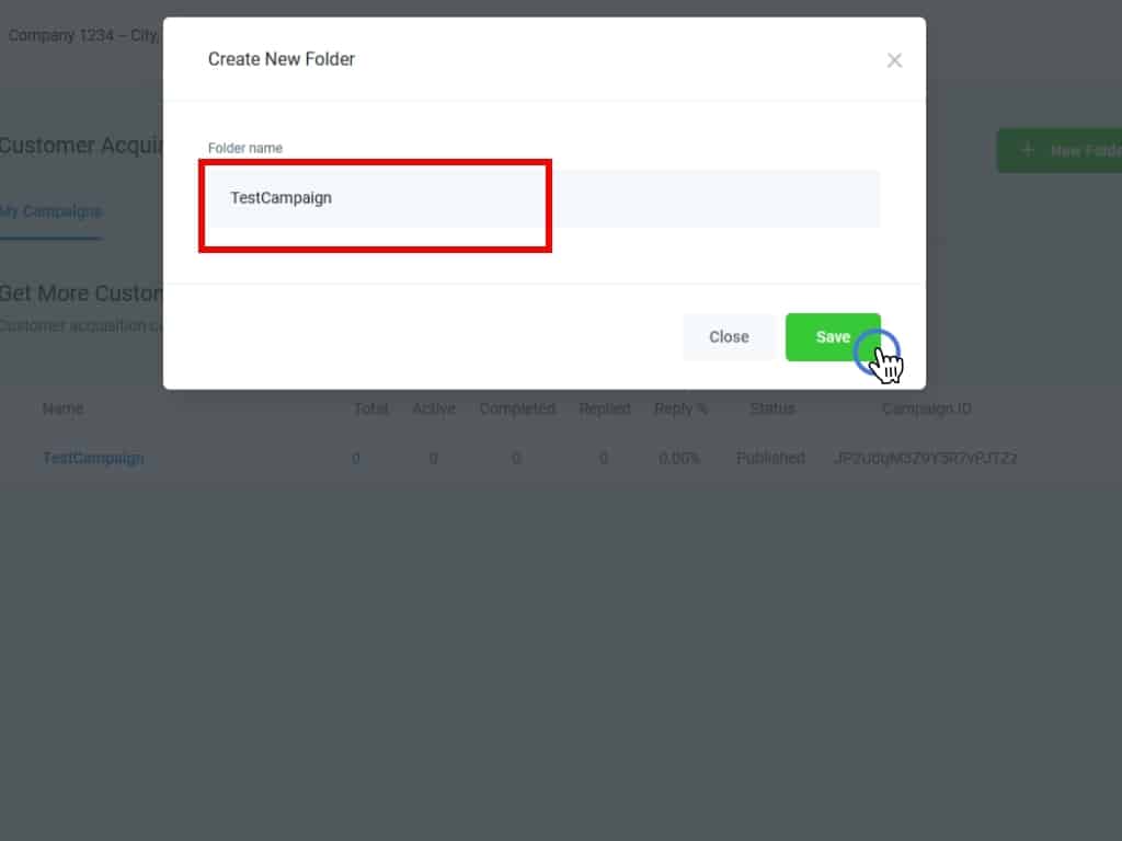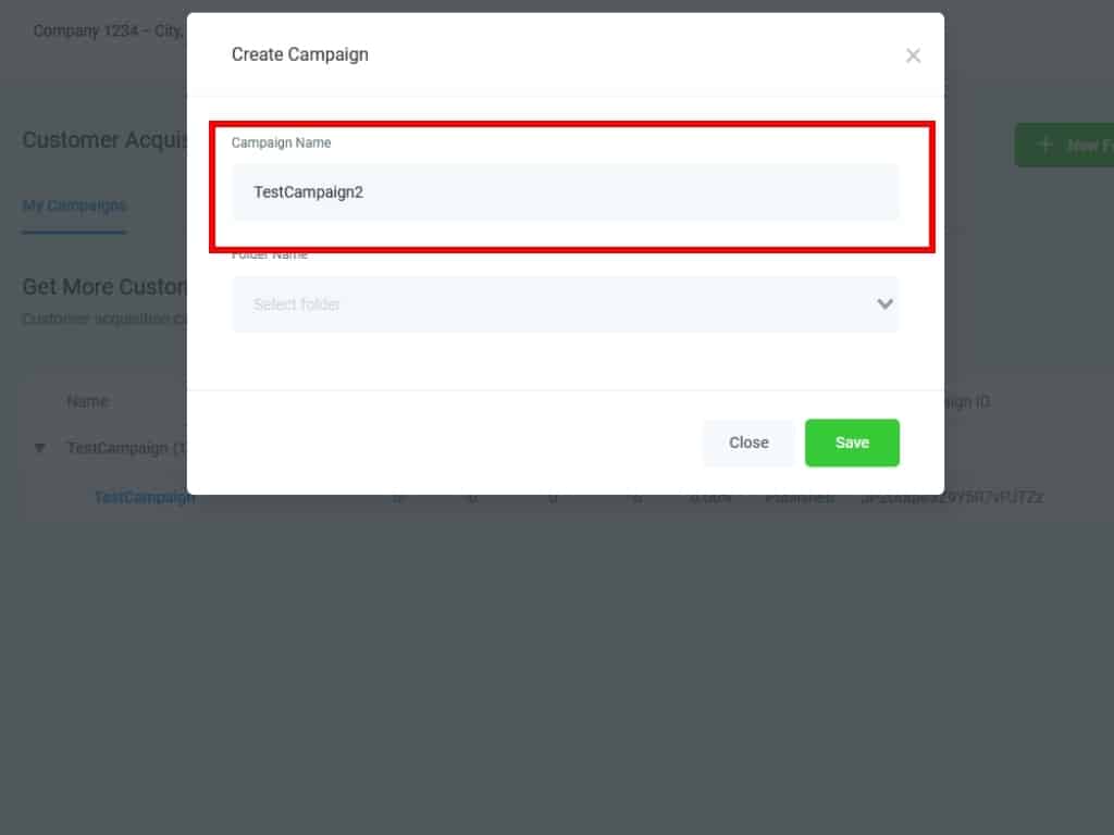 As with a new folder, add a name to your new Campaign in the pop-up.