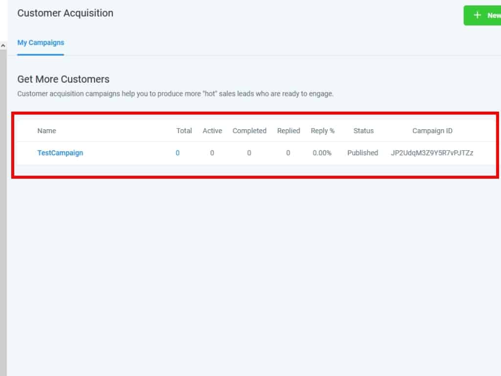 This is the main Campaigns view, and I'll show you each of its elements, one-by-one. Let's start with the list of your Campaigns in the middle of the screen.