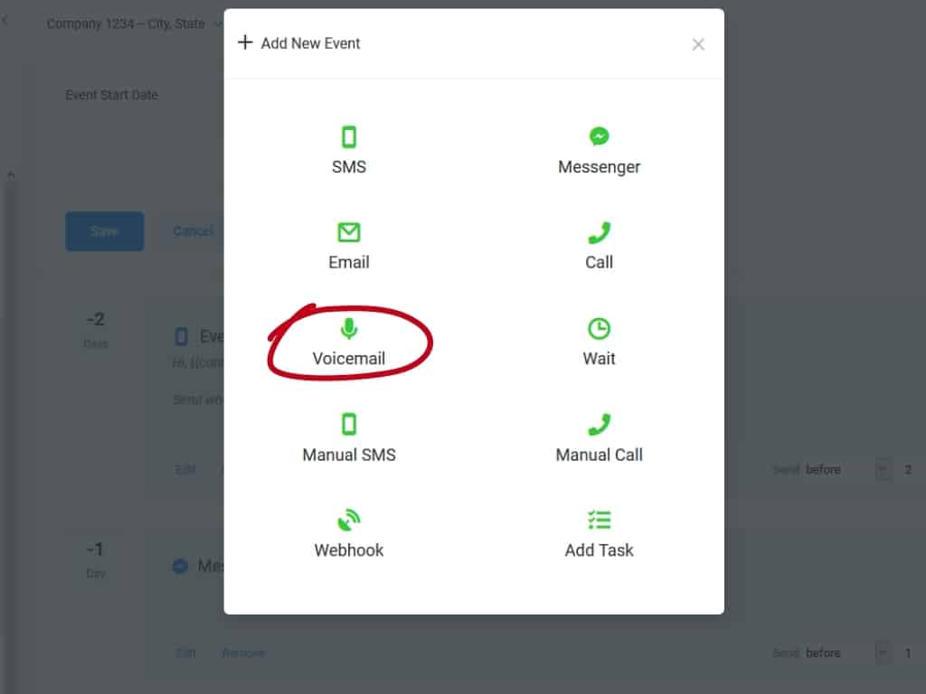 Voicemail lets you upload a recorded voice message to be sent to the contact.