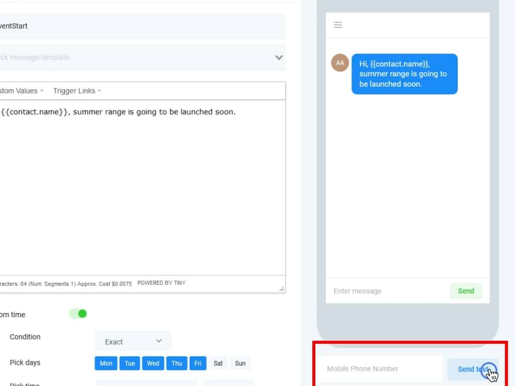 You can also send a test SMS to your own number using this highlighted box.
