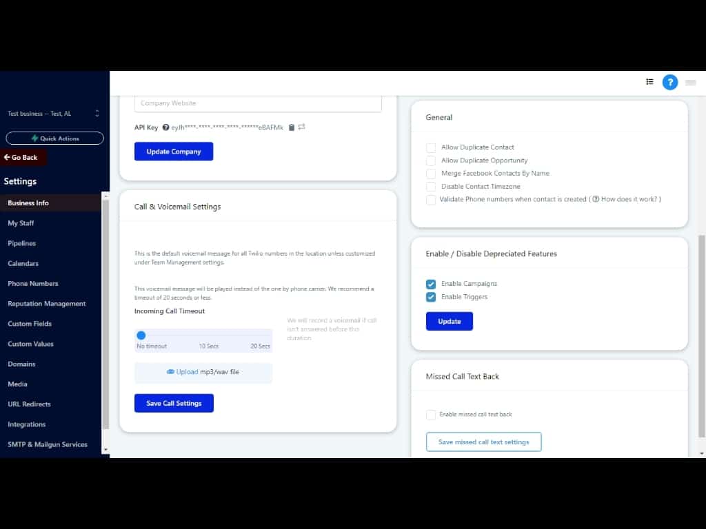 On the right side of the Business Info view, check the boxes to enable Campaigns and Triggers and then, click Update. Now, your Campaigns and Triggers will be accessible in Automation.