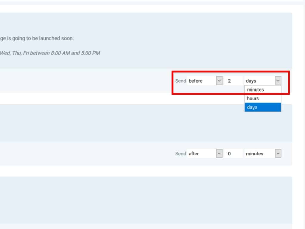 And lastly, the After option is set in relation to the previous event. This means that the event will be triggered a certain number of days, hours, or minutes after the previous event has happened.