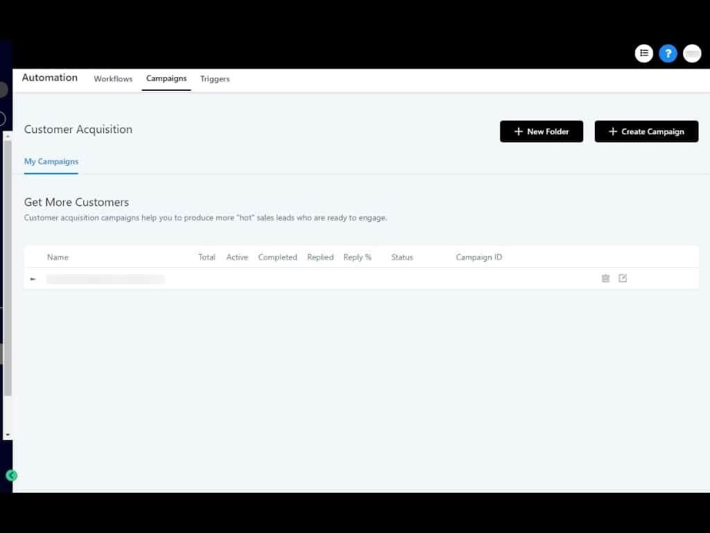 All of your Campaigns appear here. You can create folders for easier organization. Let's do that right now.