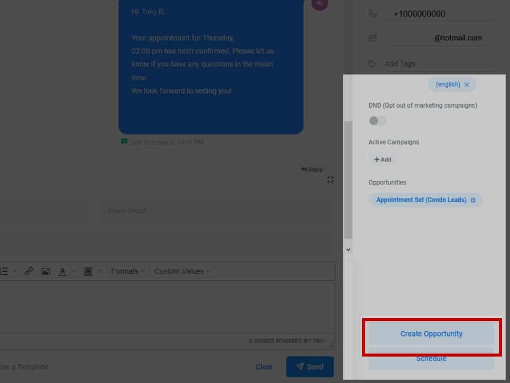 You can also create a new opportunity for the contact directly from the details by clicking Create Opportunity, which I’ll do right now to show you how it works.