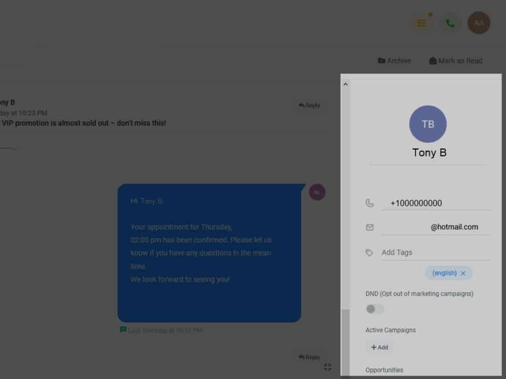 DND toggle - lets you turn off automated campaign messages for a contact.