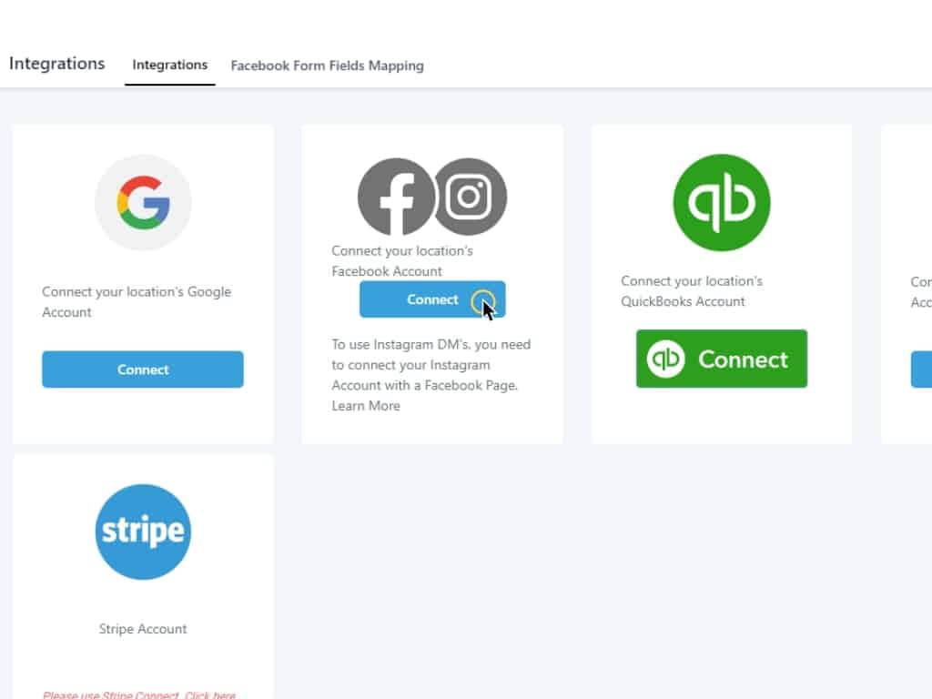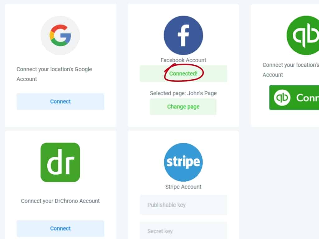 Now when you go back to your Integrations page, you'll see that Facebook is properly connected with a green Connected message.