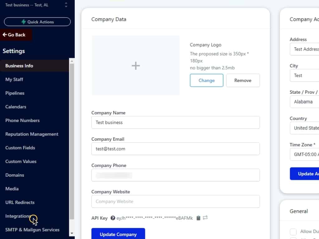 To get started, click Settings at the bottom left corner of your left menu and then click Integrations on the new left menu that appears.