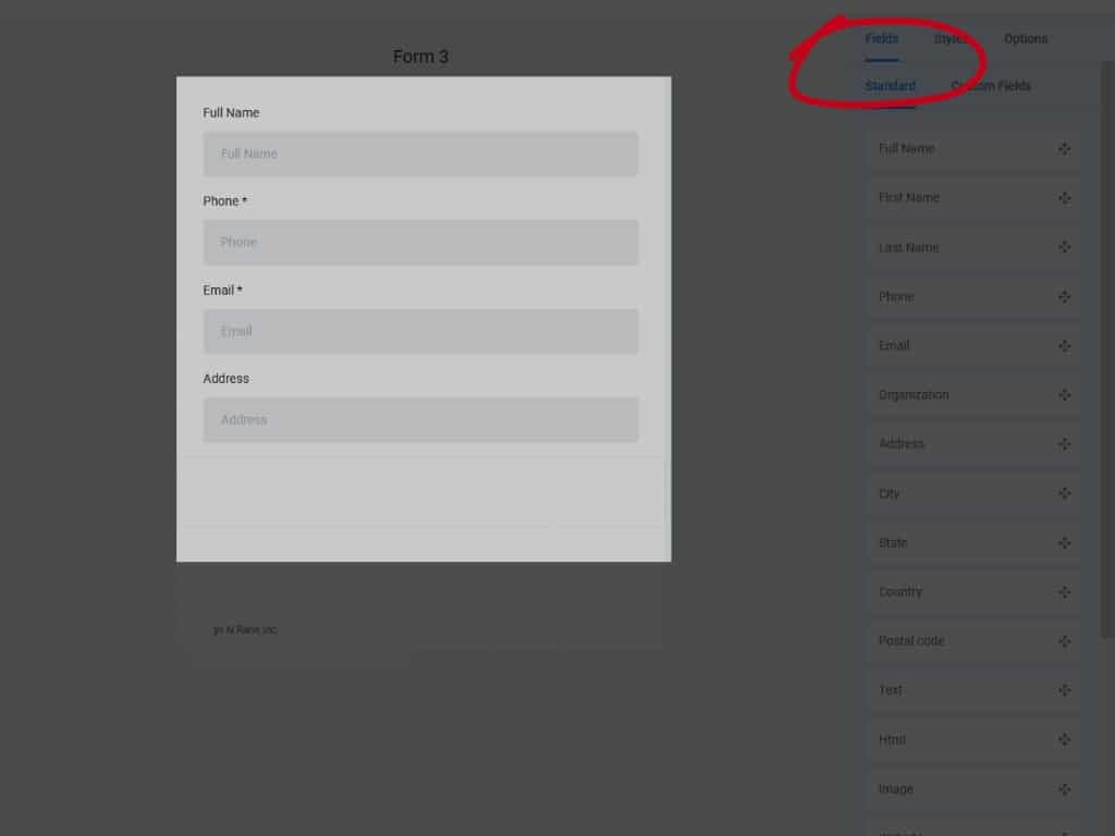 Next, let's look at the tab to the right of Fields. Click Styles.