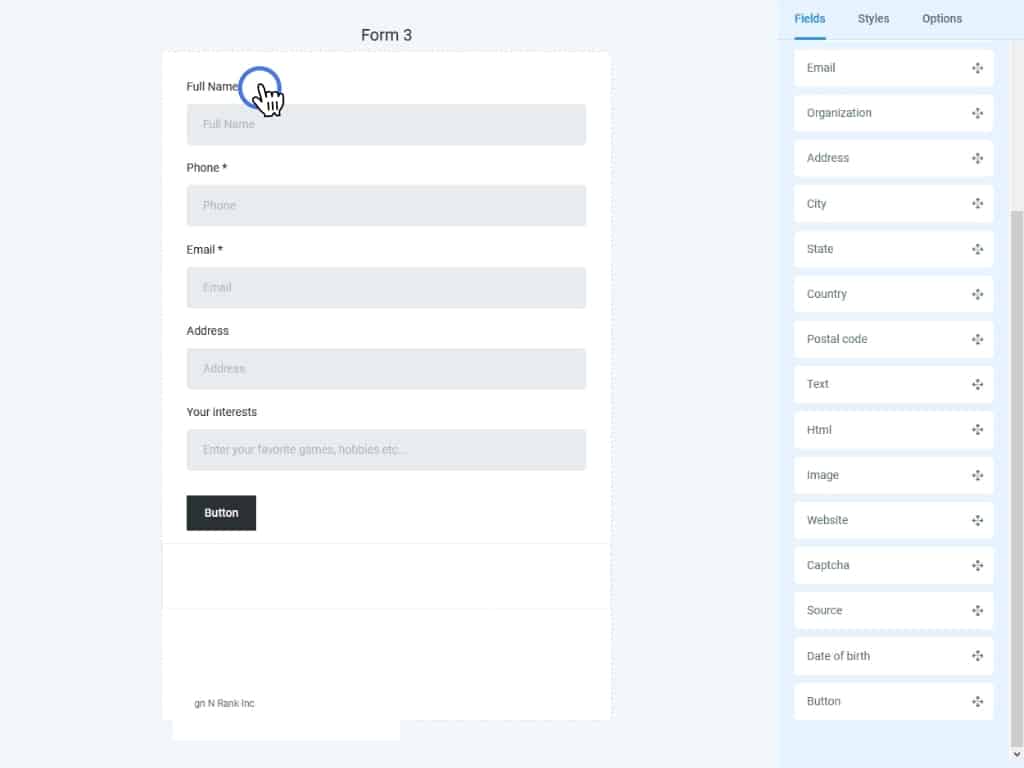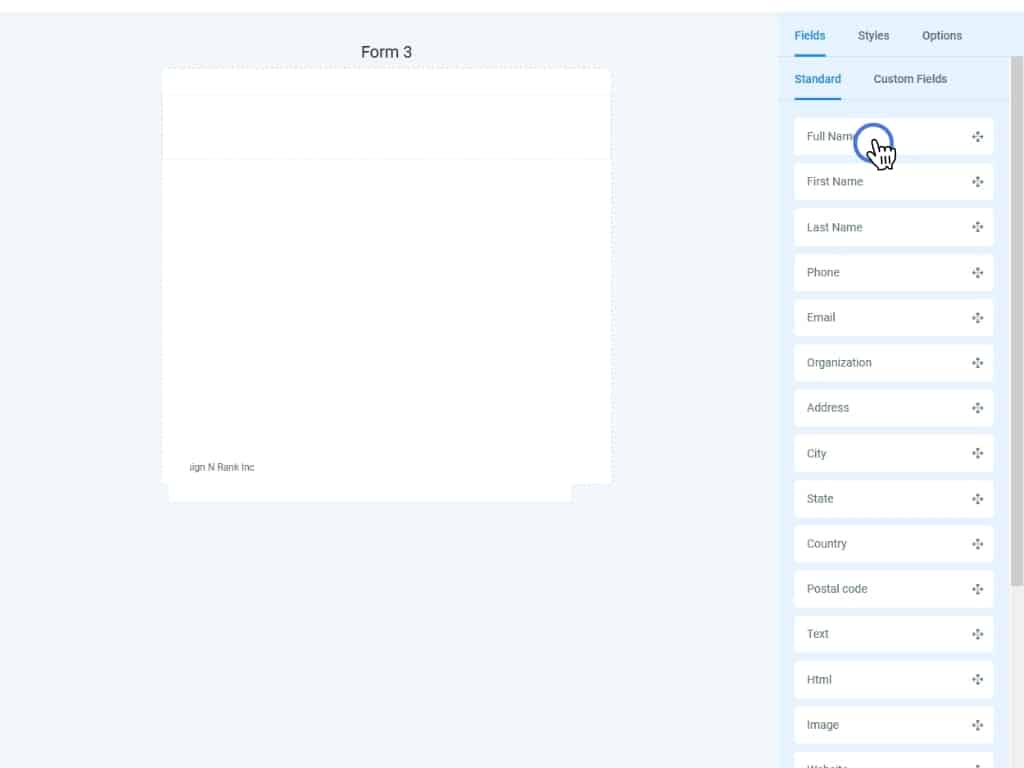 Let's start with a Full Name element. Drag and drop Full Name onto your canvas.