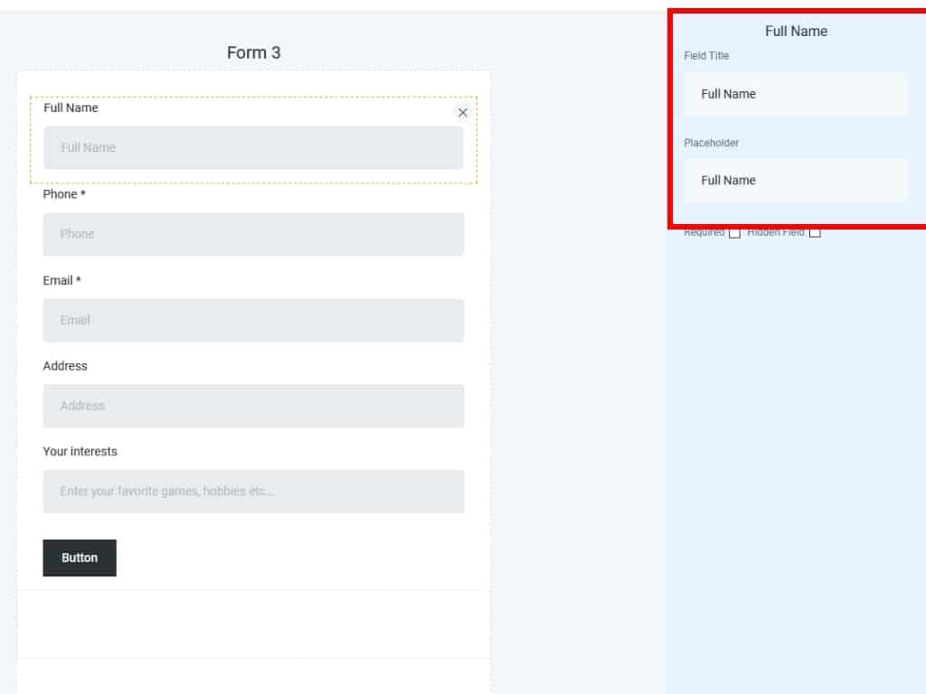 You can change a few properties here, such as the field name and the placeholder text.