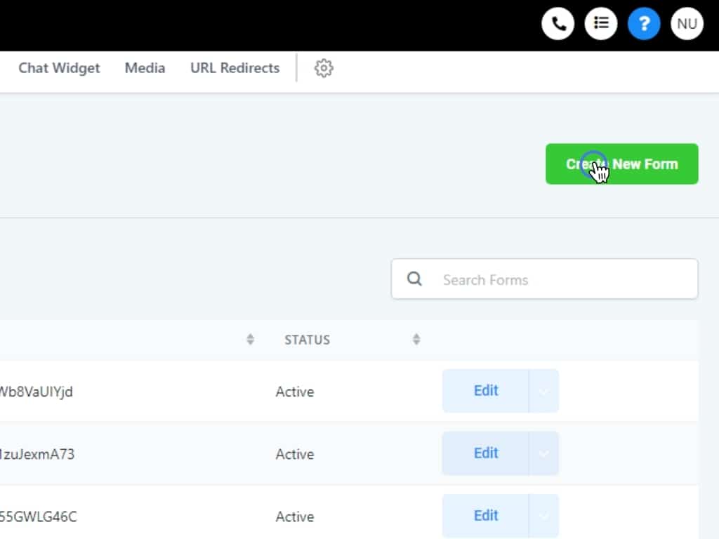 Click the Create New Form button in the upper right.