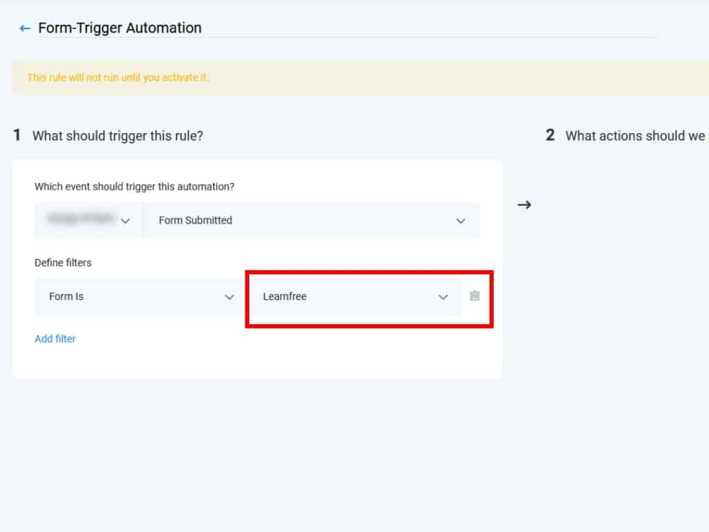 So far, we've told our rule to trigger whenever someone submits the Learnfree form.