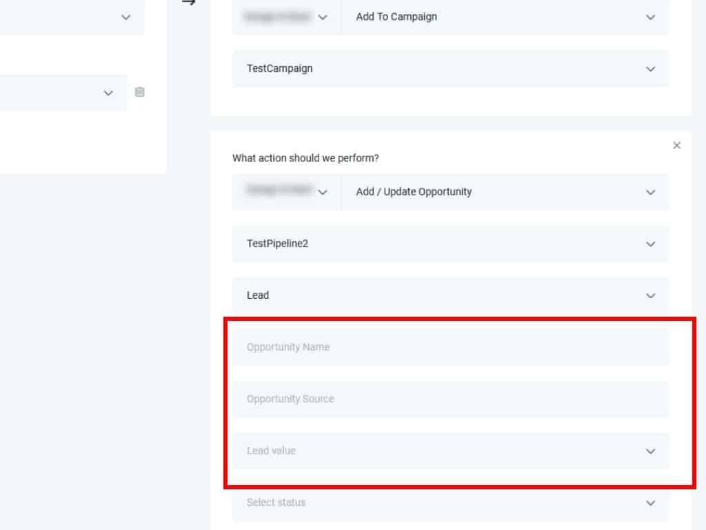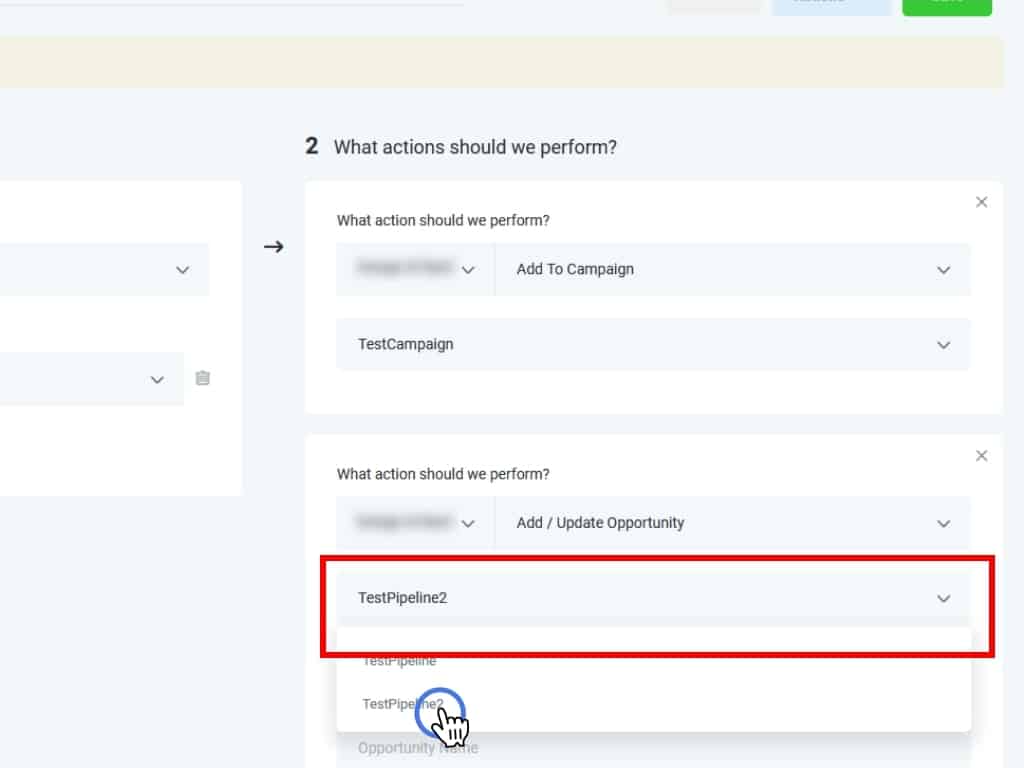 In the next field, we'll select TestPipeline2 to specify which pipeline to add the opportunity to.