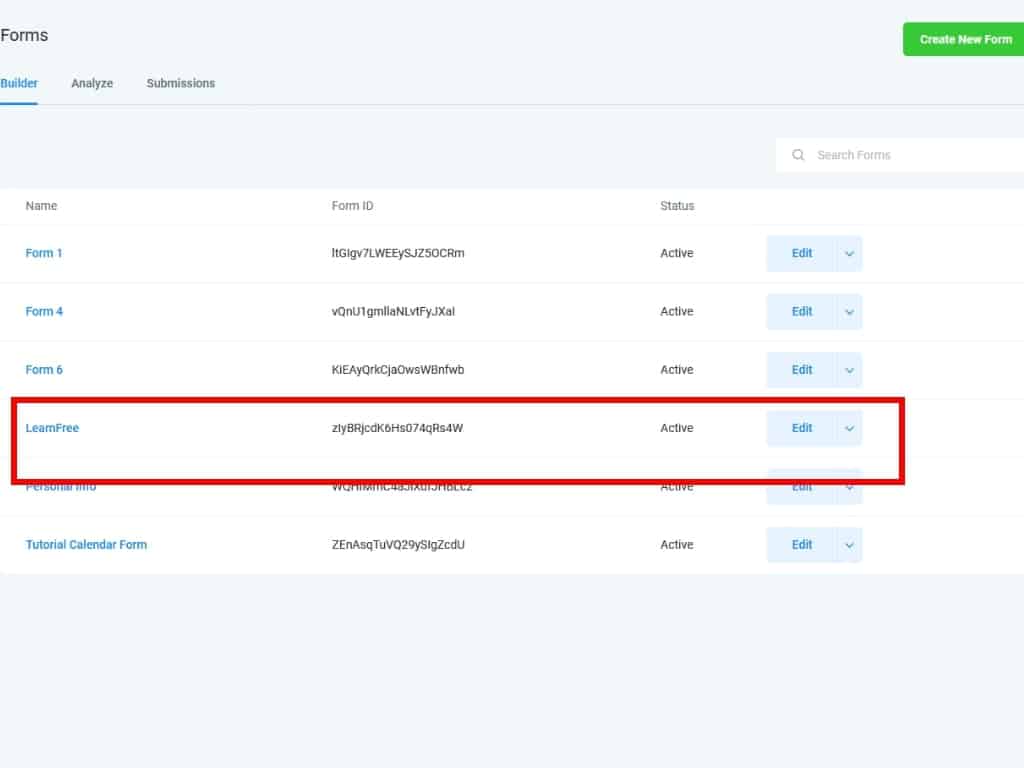 We've already created a demo form with the name "LearnFree," and we'll use it for our triggers.