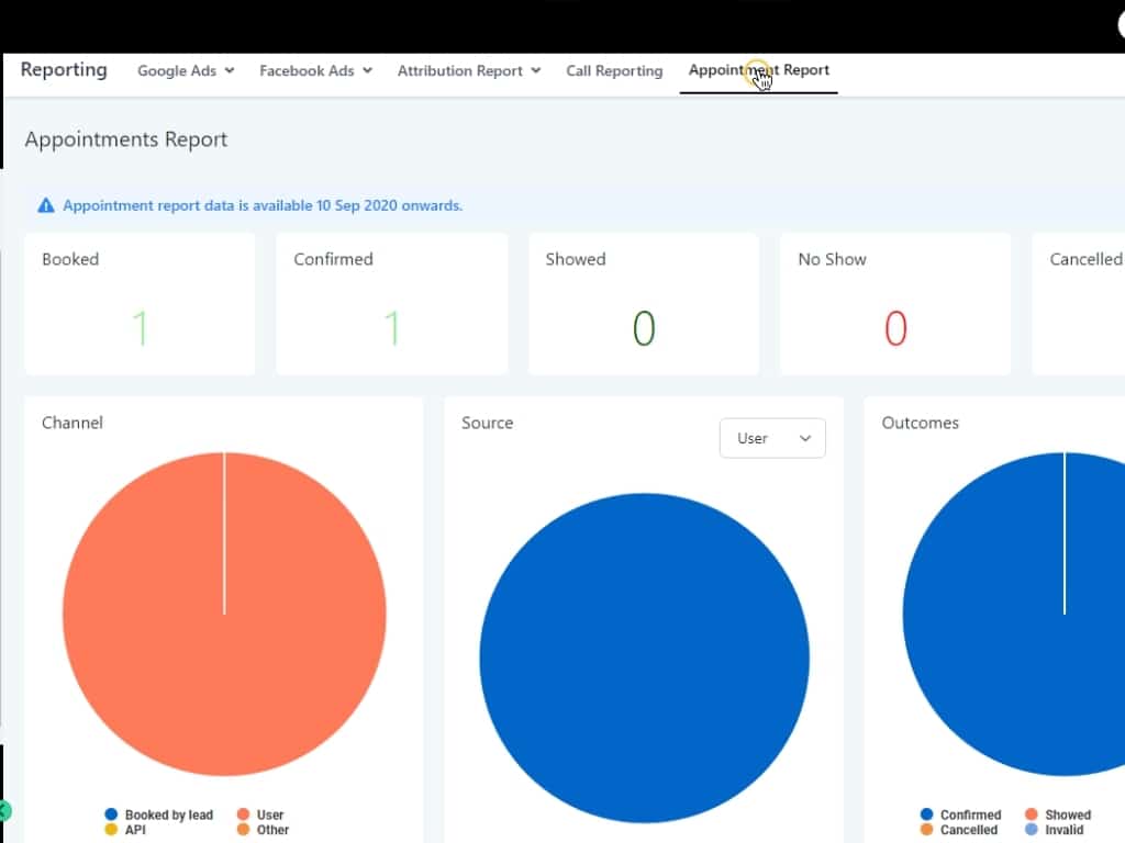 For example, appointments made by the leads coming through a funnel, appointments made by a user, or made via the API, or through another channel.
