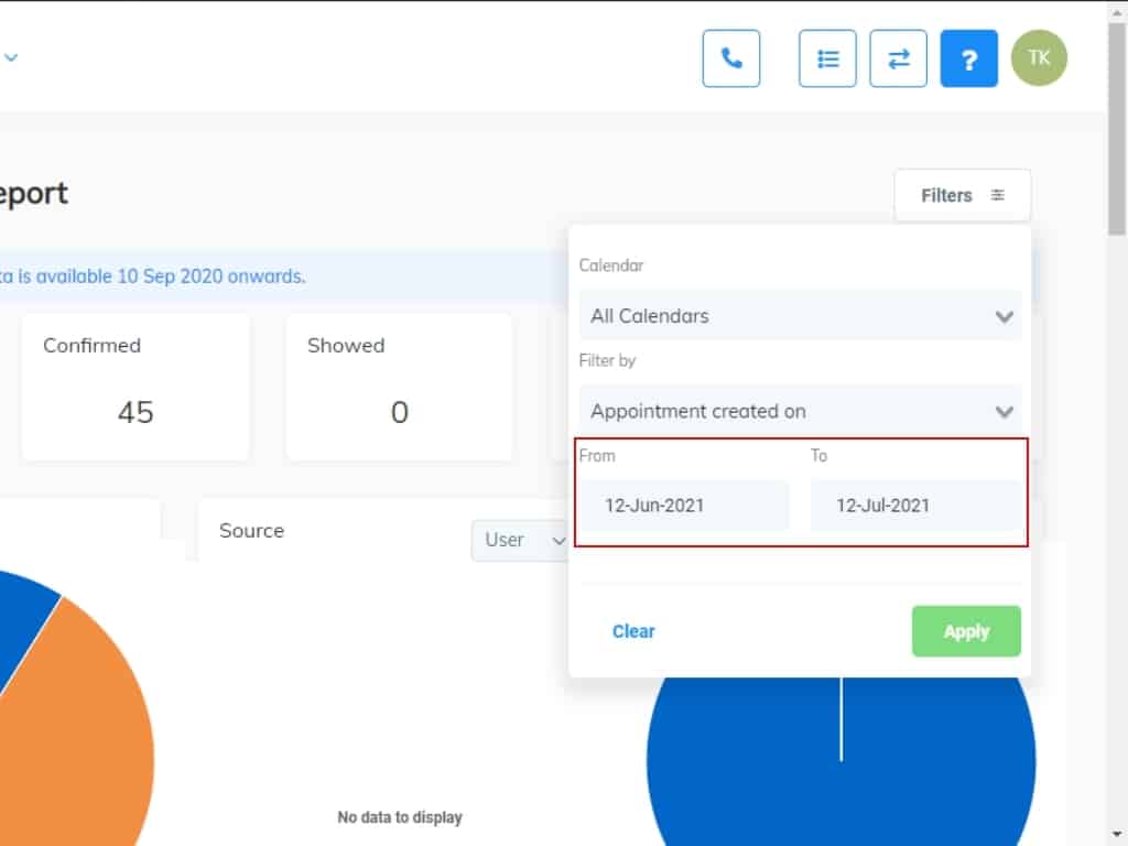You can also choose whether you want to see appointments that were created within a specific timeframe. You can filter by appointment date or by the date the appointment was scheduled. Choose the timeframe and click apply.