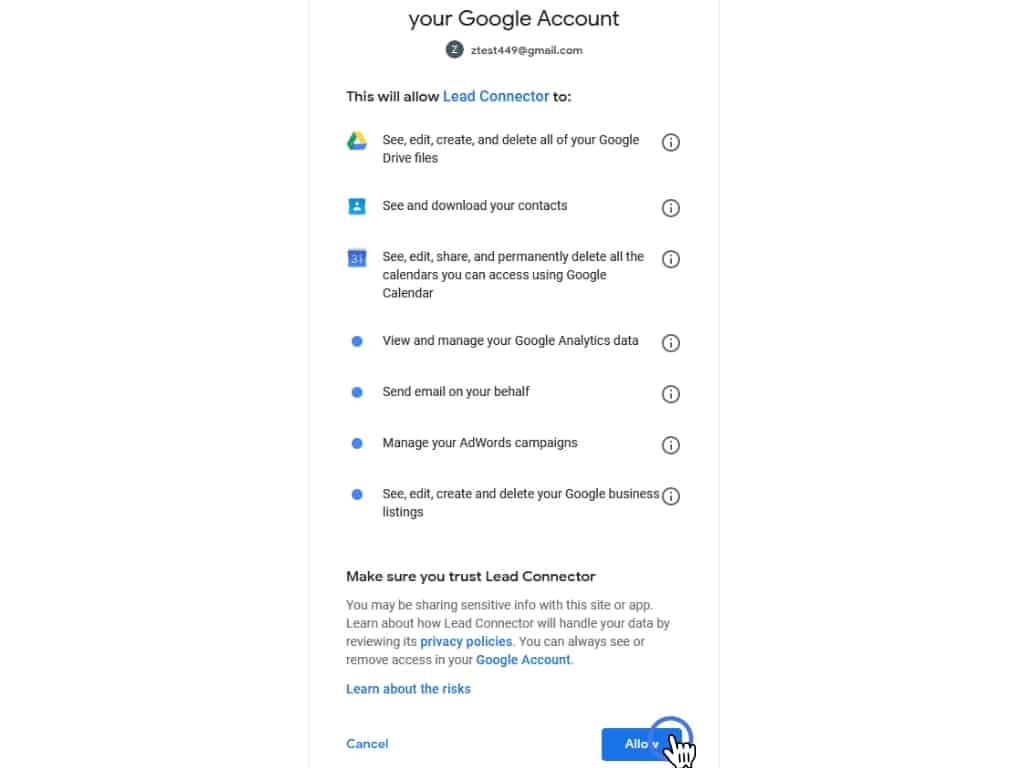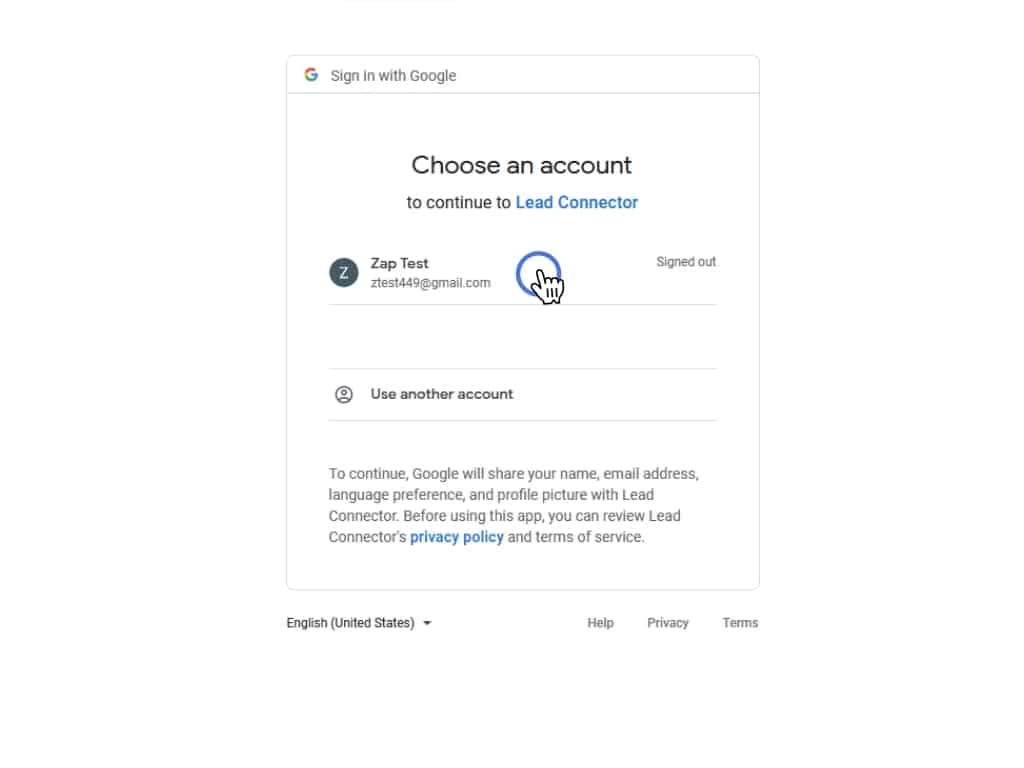 A new page will open for selecting your Google account. Click the account you'd like to integrate.