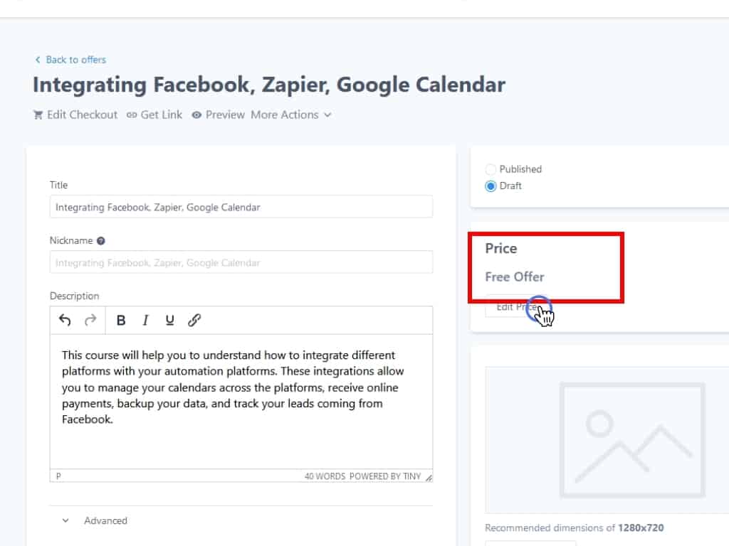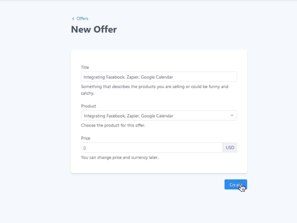 In the last field, you can set a price and currency for your offer, as well as the currency. We're going to leave this offer with a price of zero.