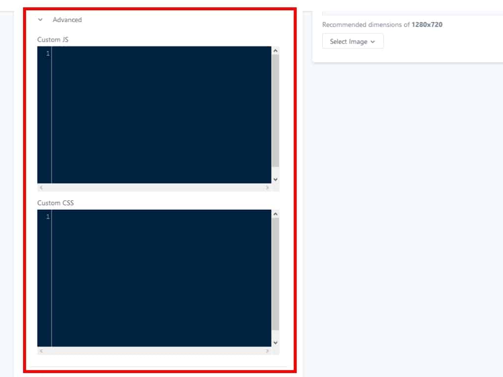This opens text boxes for JavaScript and CSS. This is where you would add custom code to your offer page.