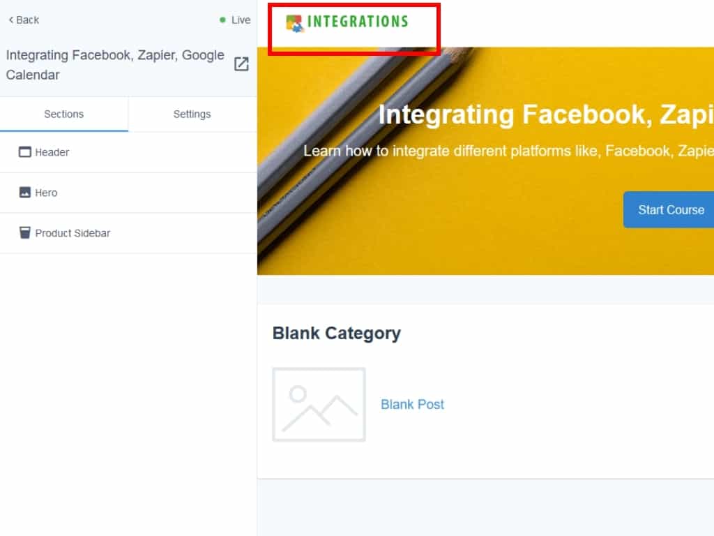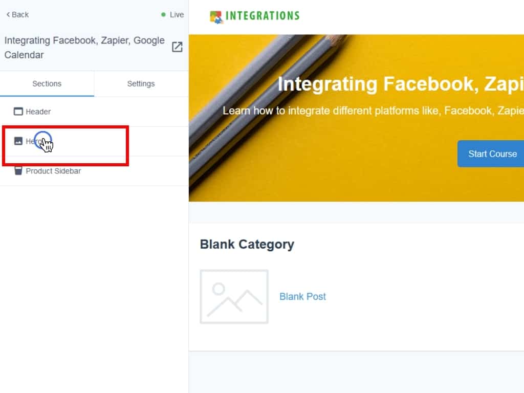 This sidebar contains 3 different sections, and we'll go through each section one by one. First, let's click on Header.