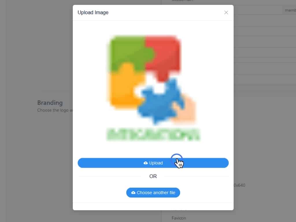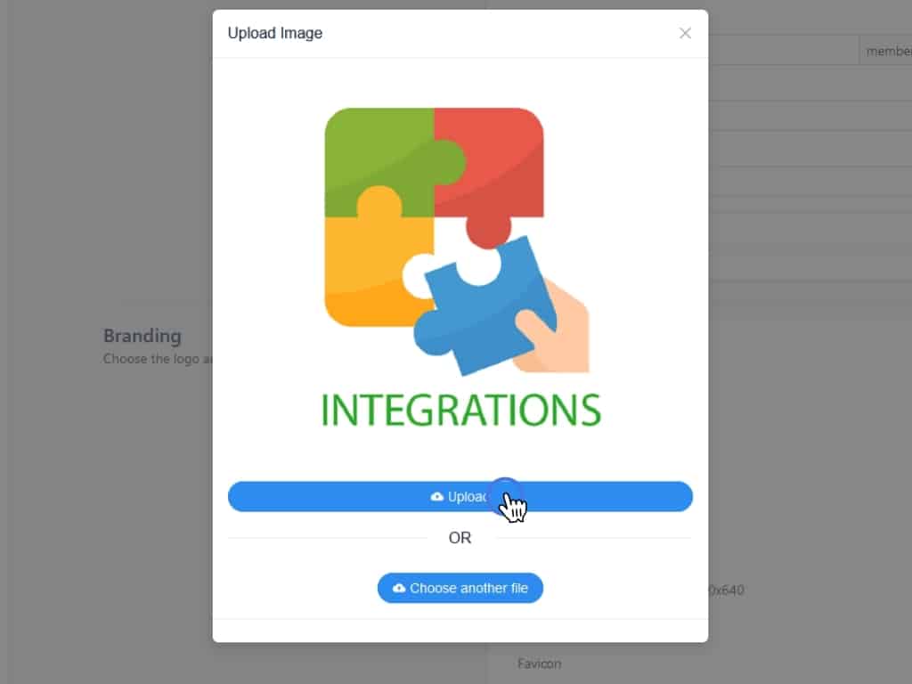 On the popup, click Choose file to open your system file browser and locate the required logo file.