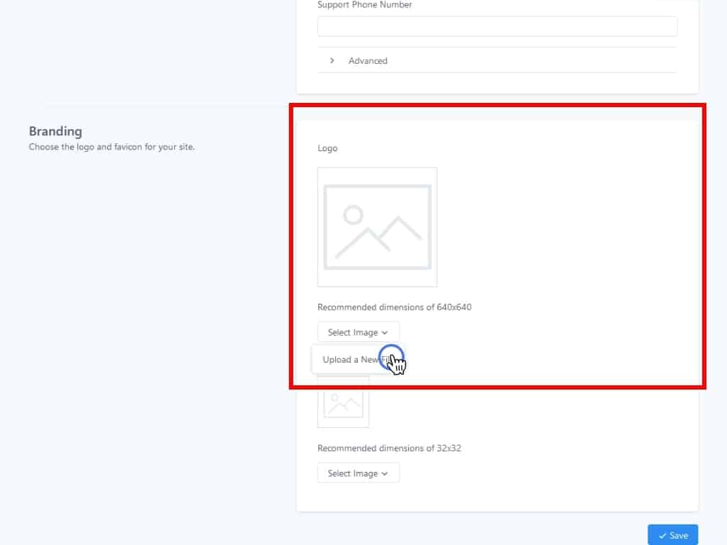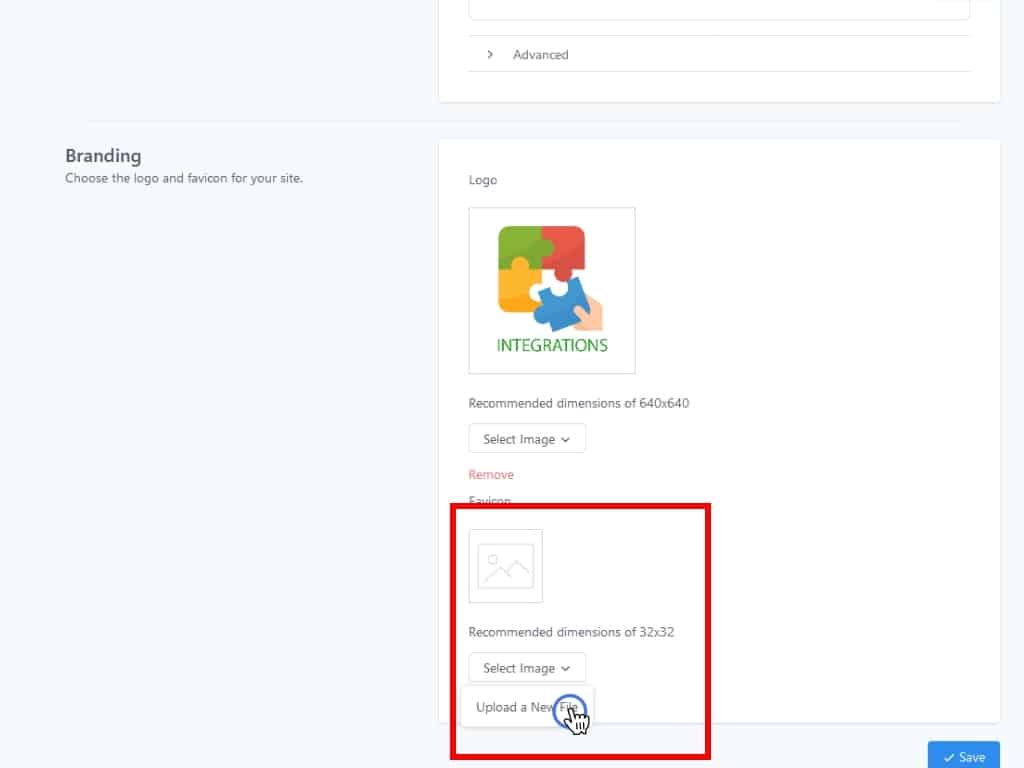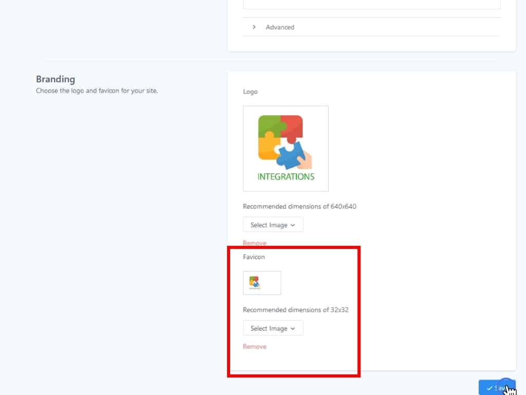 Our Favicon image is loaded successfully. Now all the information required on this page is complete, so we'll click the Save button at the bottom right.