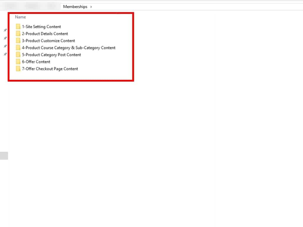 We recommend organizing your files into folders for each section of the checklist BEFORE you create the membership site. That's what we've done here for this demo.