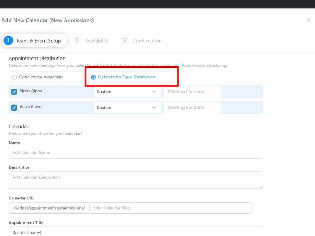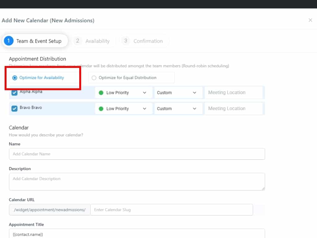 The second distribution option removes priorities and equally distributes all appointments. However, we're going to leave the optimize for availability option selected for now.