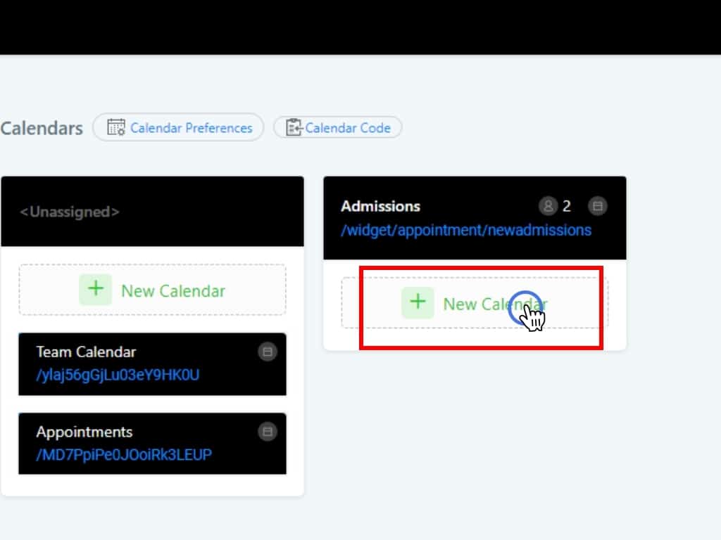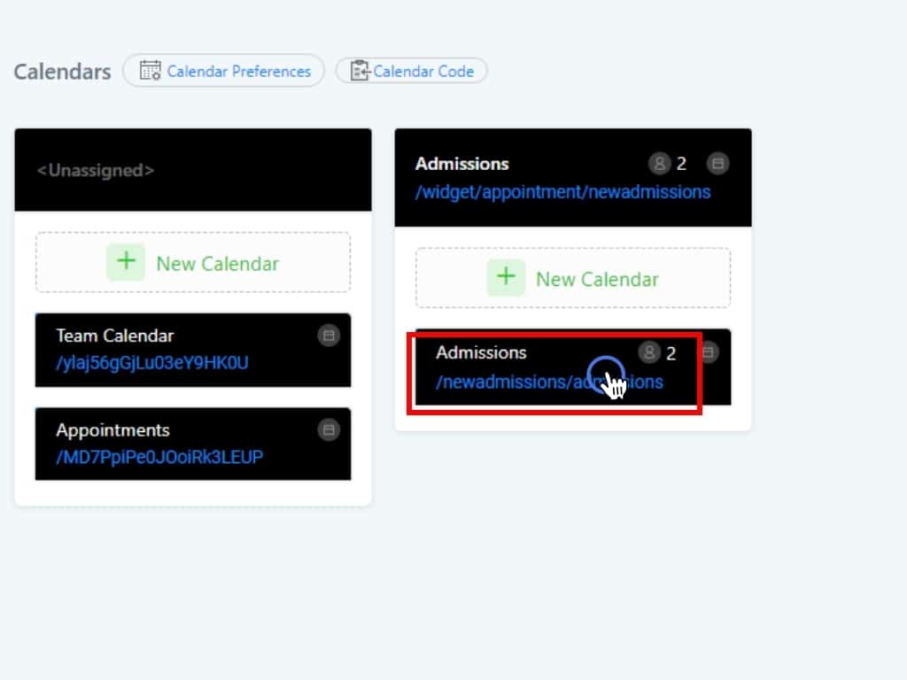 As you can see, the new calendar now appears under our Admissions column on the Calendars view. Click the URL and let's see what happens.