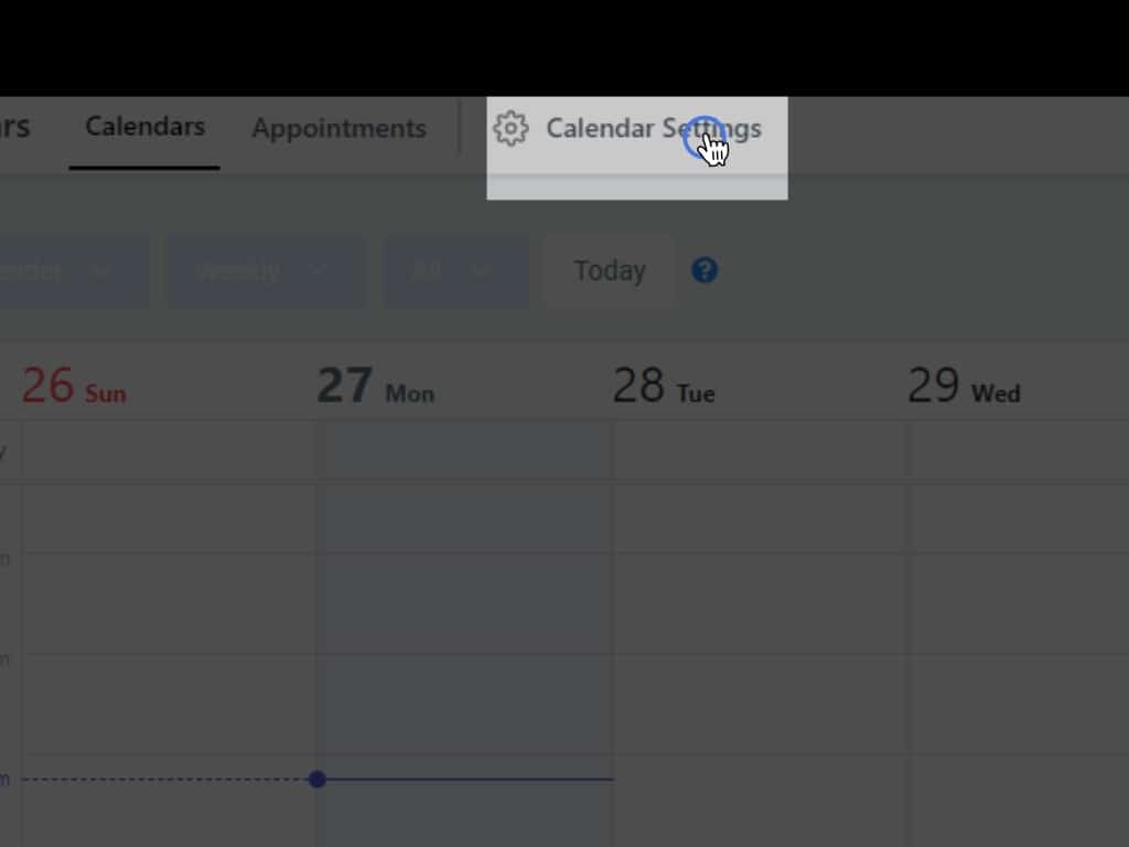 To start, click Settings on the left menu, and then click Calendar settings on the top menu.