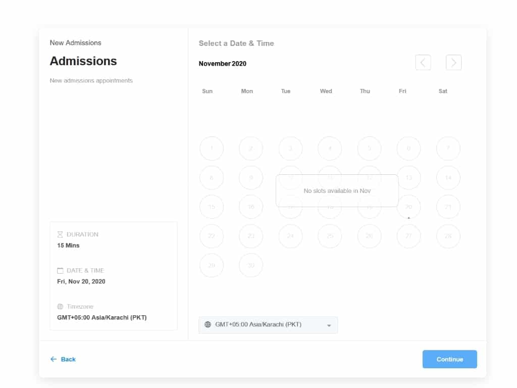 The first field is slot duration, which lets you set the amount of time you allot to each appointment. Your slots can range from 10 minutes to 8 hours. Let's set our slot duration to 15 minutes.