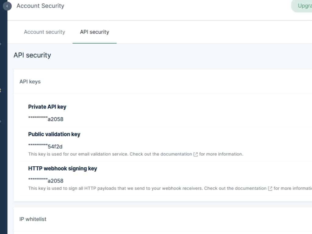 Now your Private API key and the attached subdomain will show up on your platform's Mailgun settings, confirming that the integration has been successful.
