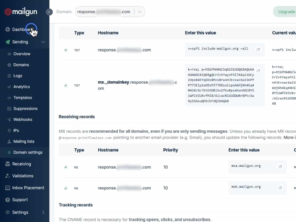 Now let's switch back to Mailgun to verify that our setup is correct.