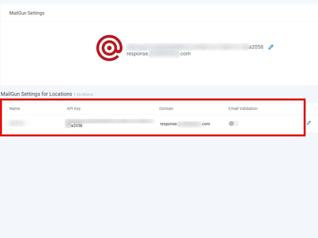 Here you can see that we've added our Mailgun API to our location, meaning that the integration is fully operational and can now be used.