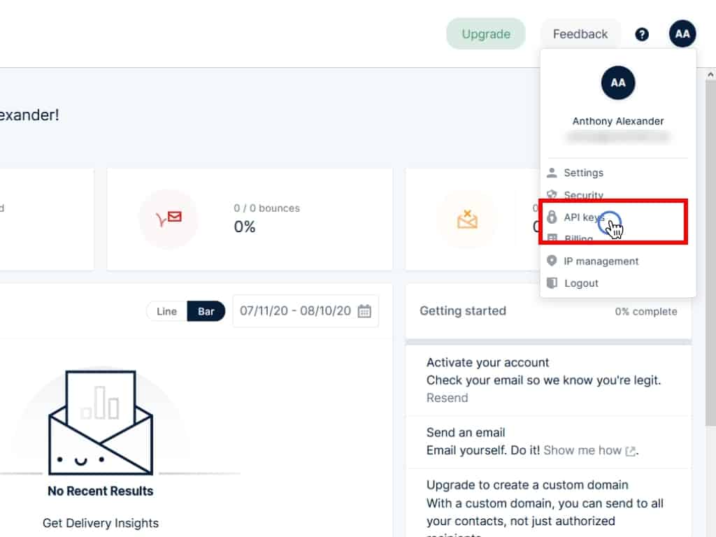 To start, log in to Mailgun. When you open your account, it will take you to your Dashboard.