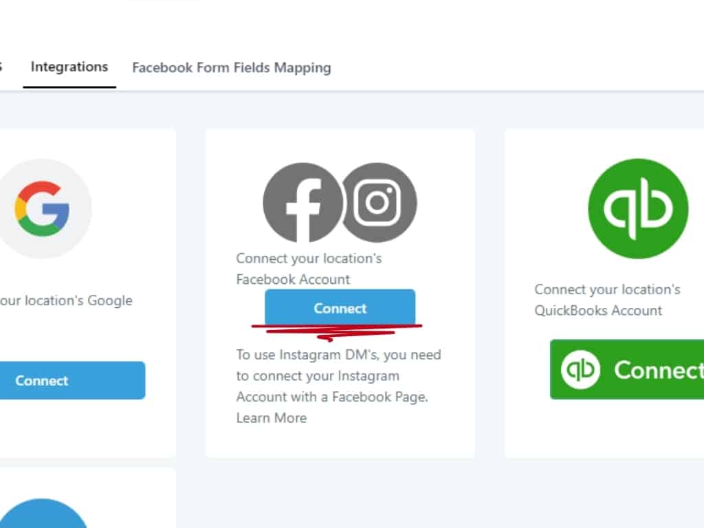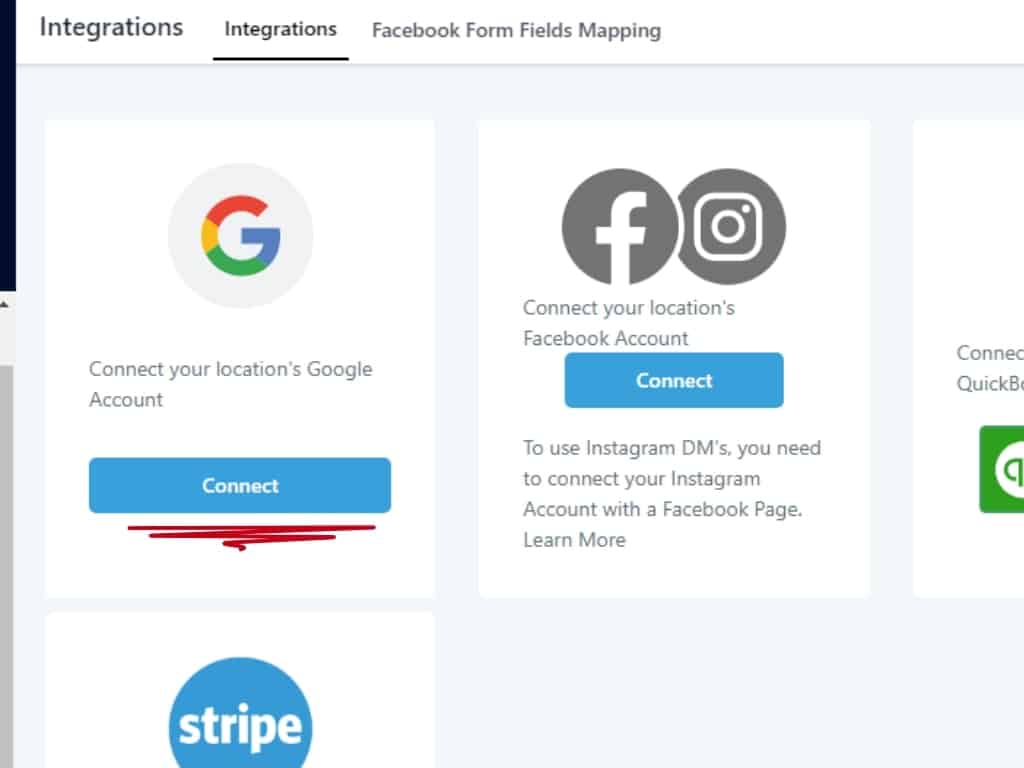 Google is the most common integrations, often used for Google Ads, Google Calendar, Google My Business profiles, or other Google products.