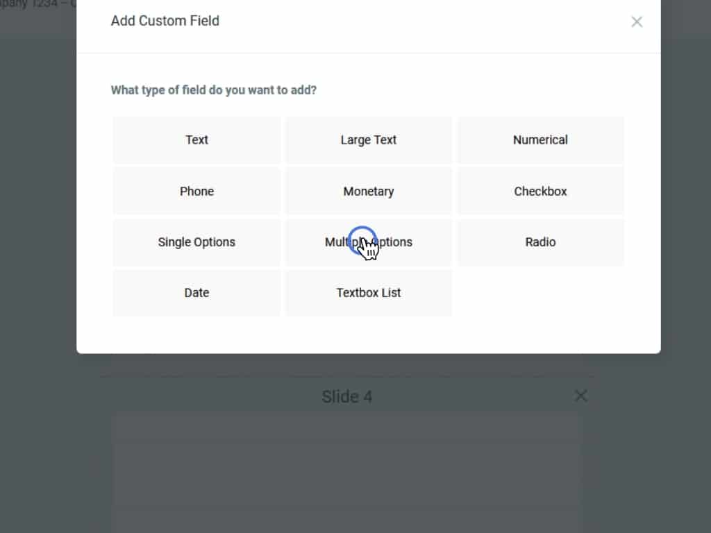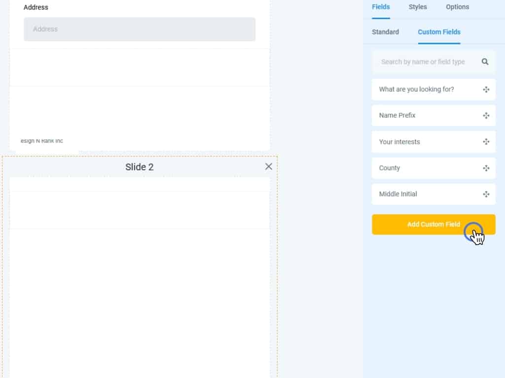 We are going to add some custom fields to this second slide. Click the Custom Fields tab and then click the Add Custom Field button.