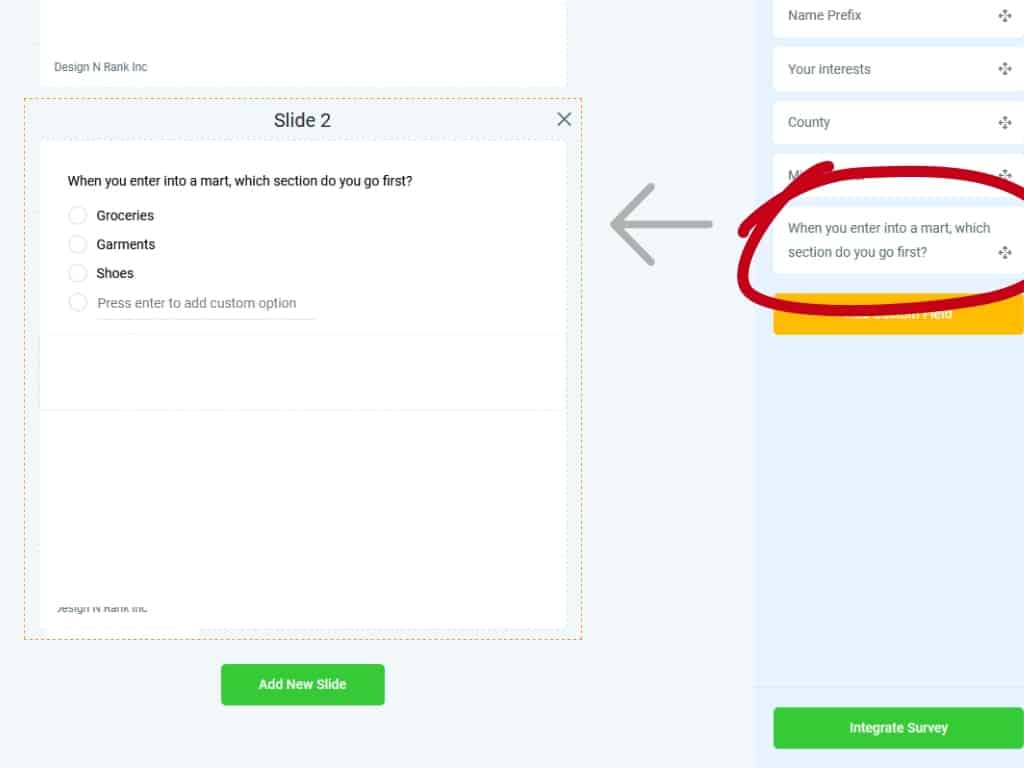 To start a new slide in the same survey, click the Add New Slide button at the bottom.
