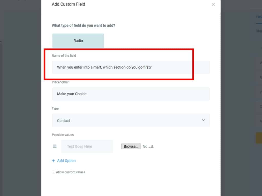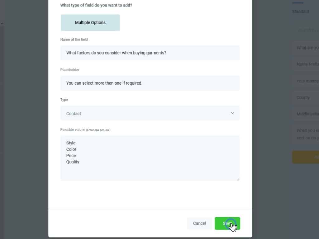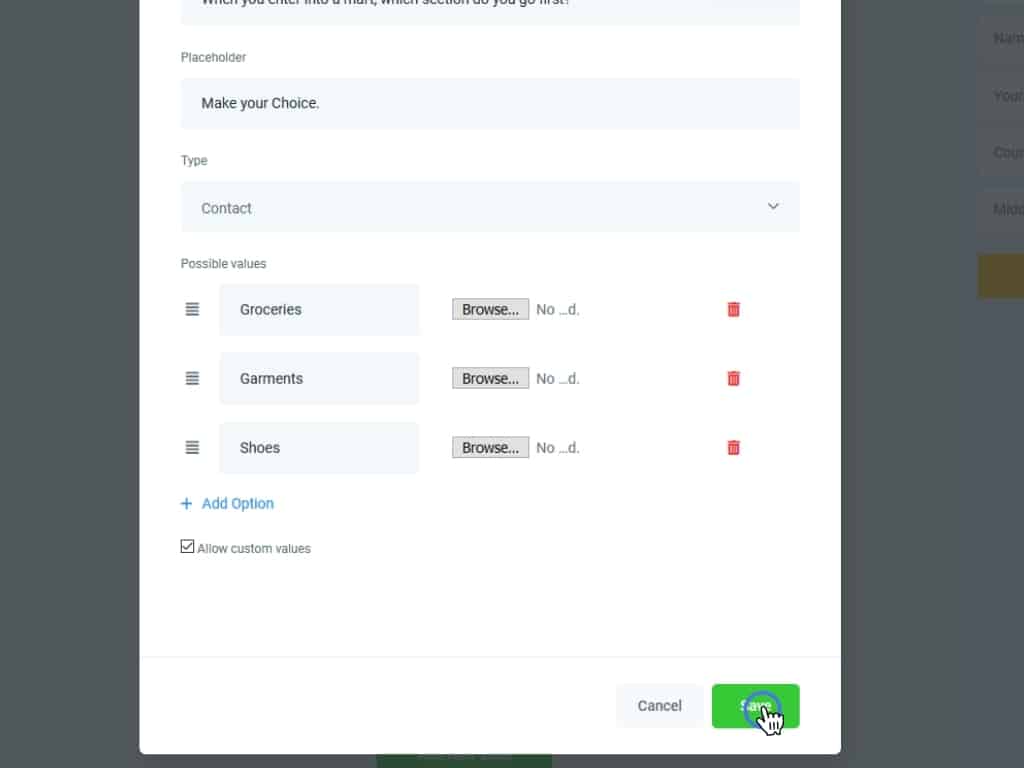 Click Add Option to give the user more possible answers. As you can see, I’ve added Garments and Shoes.