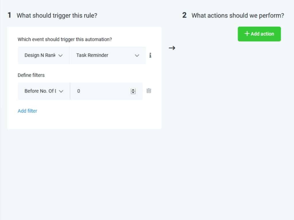 Next, we'll click Add Action on the right side and choose how we'd like the reminder to be delivered. Let's select Send email.