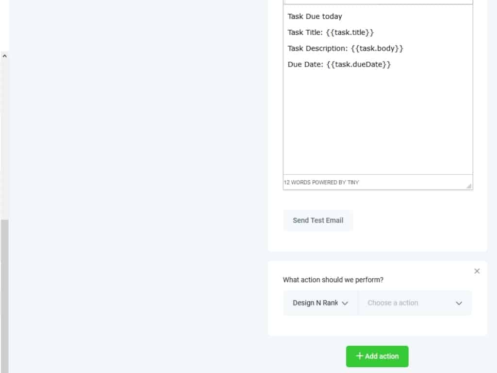 For your text, you can use custom values. Here we've added custom values for the task name, task description and due date.