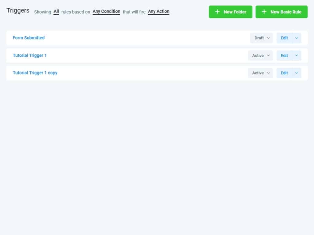 Next, we'll need to create a new trigger for the reminder. Click Triggers on the left menu and then click New Basic Rule in the upper right.