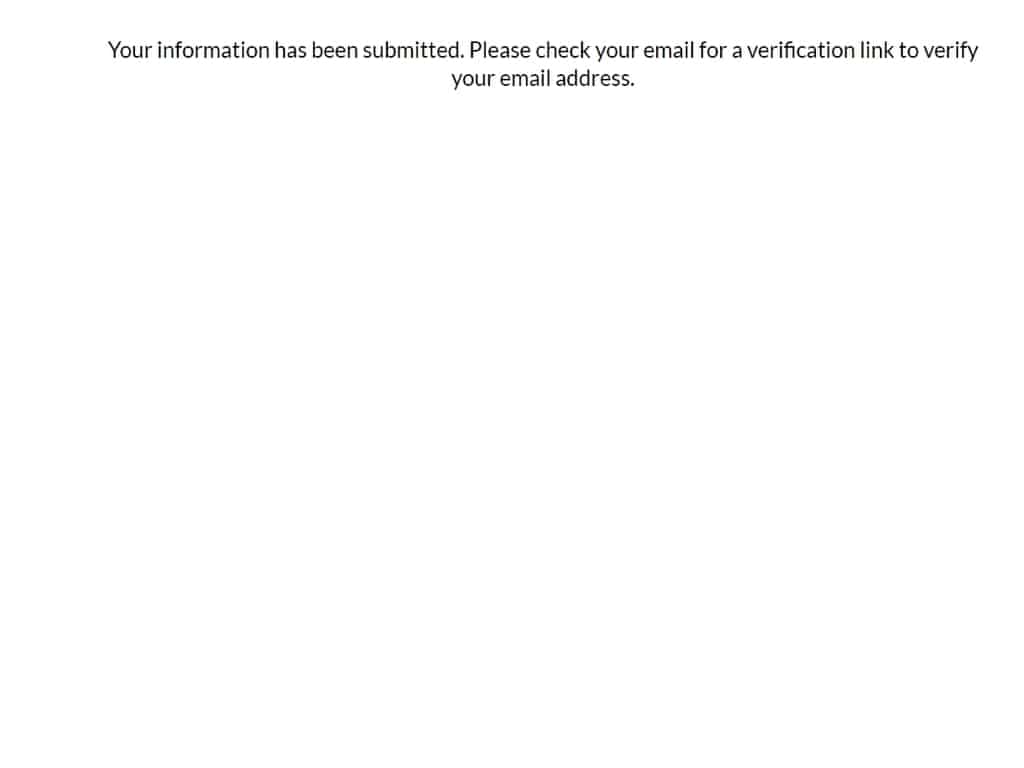 As expected, we receive the thank you message letting us know that a verification link has been sent to the email address provided.