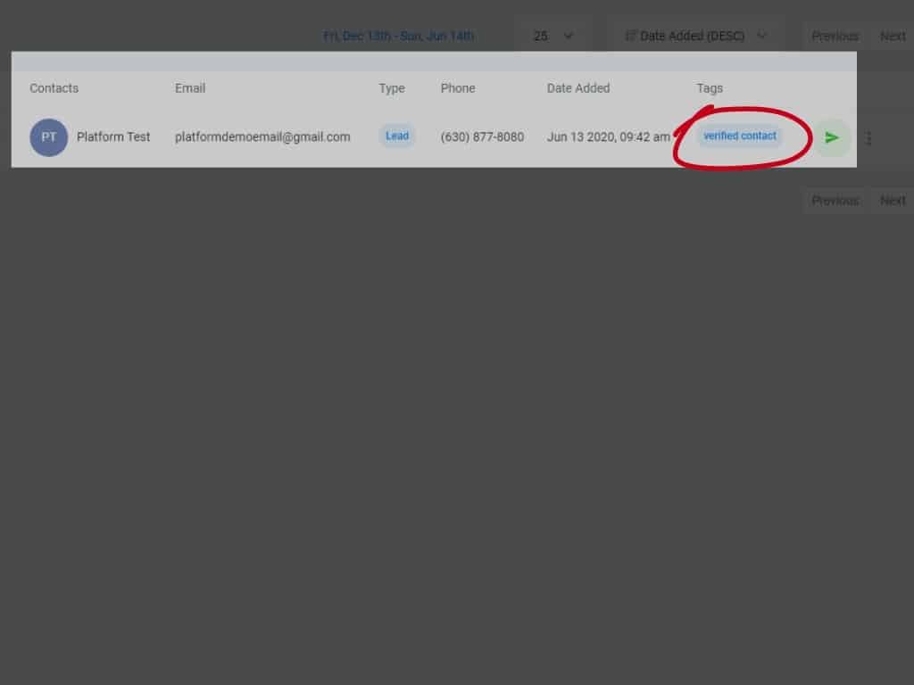 The last thing we need to do is confirm that the verified contact tag was added to the contact details.